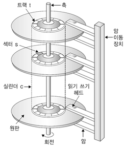 디스크는 물리적인 탐색을 통해 검색하기 때문에 속도에 영향이 있을 수 있다. 디스크에는 헤드라고 하는 녀석과 원판이 회전하게 되면서 읽기 쓰기가 이루어진다. 데이터를 읽기위해 수 바퀴의 회전과 헤드의 이동이 필요하다는 이야기다. 메모리의 경우 1회 탐색시 마이크로초(ms)단위이지만 디스크는 밀리초단위가 경과한다.