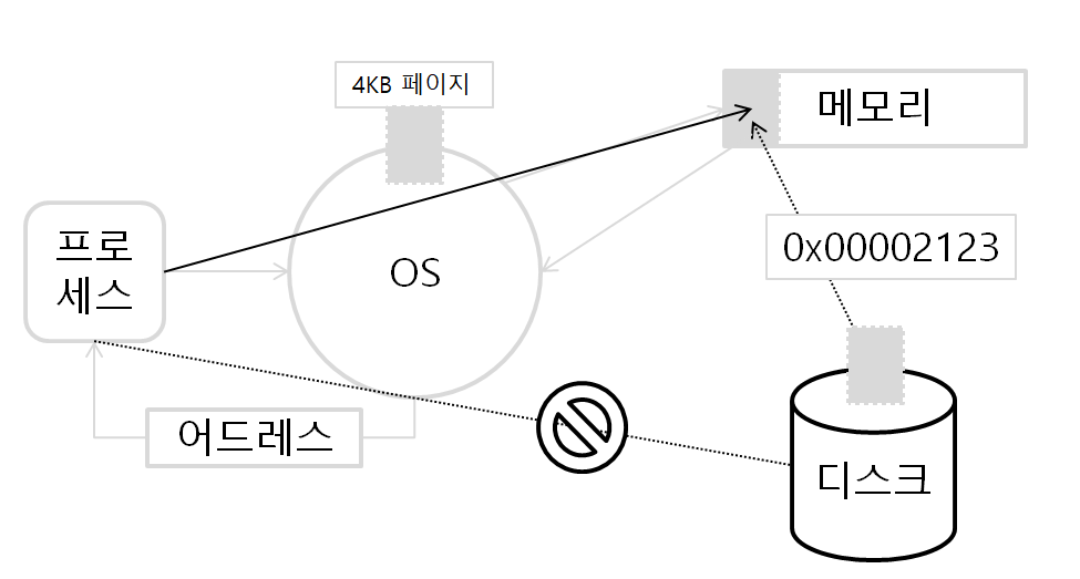 2. 읽은 페이지는 메모리에 쓴다. (프로세스는 디스크에 접근 불가이기 때문에) - write