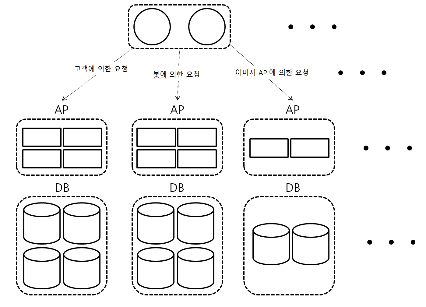그렇다고 메모리를 대규모에 따라 계속해서 늘리기만 할 수 없다. (경제적인 비용과 밸런스 등 고려) 이럴 때 "복수 서버 확장"이 필요할 수도 있다. 어느정도 성장한 기업의 서버는 대부분 이 방안을 채택하여 사용할텐데, AP 서버를 여러 개 두는 것이다. 이는 CPU 부하를 낮추고 분산시키기 위해서다. AP 서버와 별개로 DB서버의 확장은 캐시 용량 확보 혹은 효율을 높이고자할 때 사용된다.