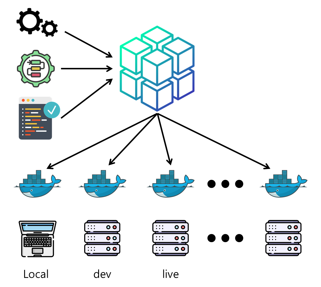 앱을 구동하기위한 코드와 종속성, runtime을 하나로 묶어서 local, dev환경을 비롯한 스테이징, 라이브환경 등 다양한 환경에 배포를 할 수 있다.