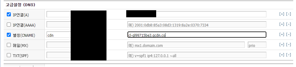- cl-gl99715be3.gcdn.co를 복사해서 도메인을 얻은 곳에서 CNAME을 도메인에 맵핑시켜줘야한다.