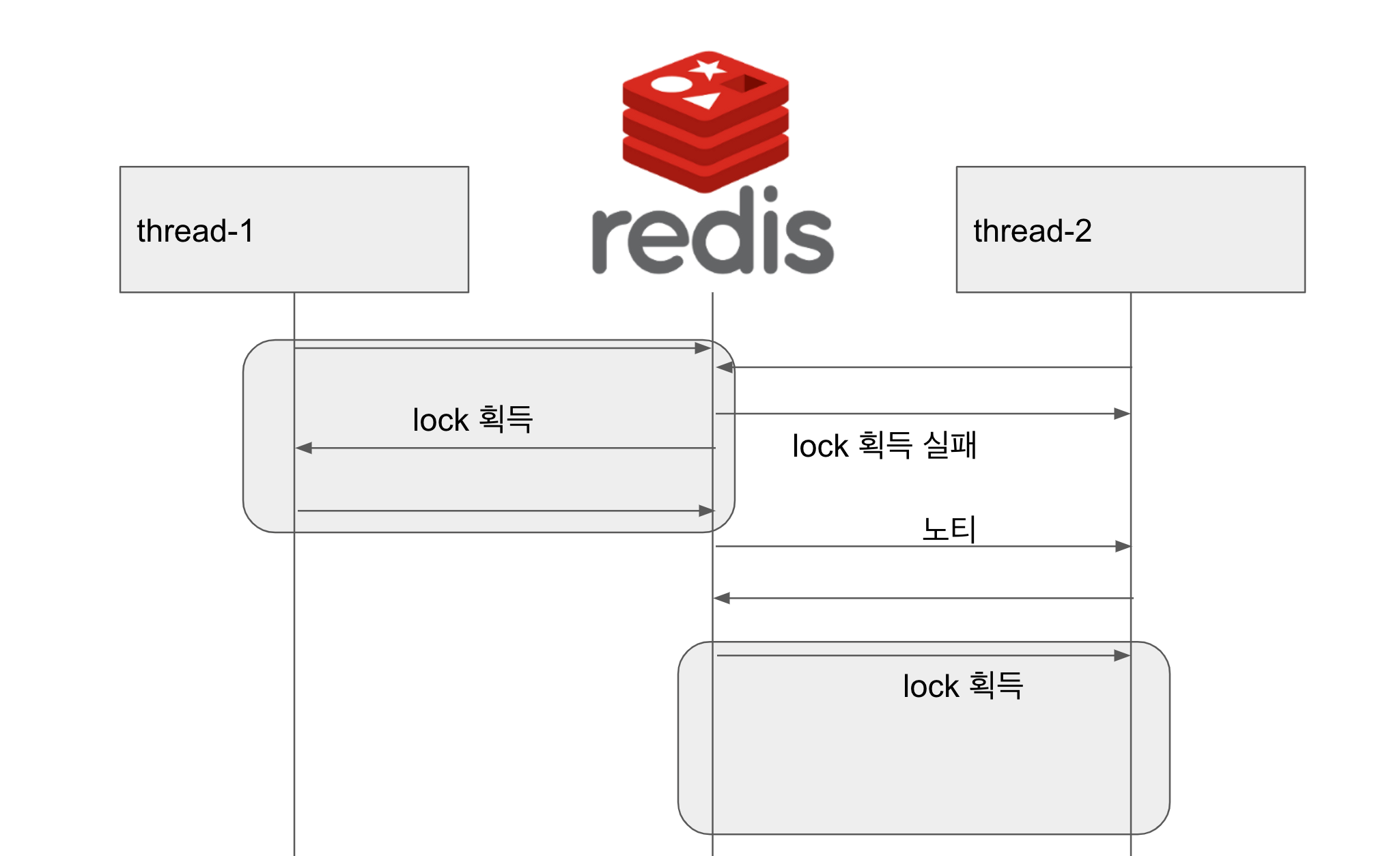 - CompleteFuture.get() 메서드를 호출하여 thread id로 구독한 채널로 lock 획득이 유효할때까지 대기한다.