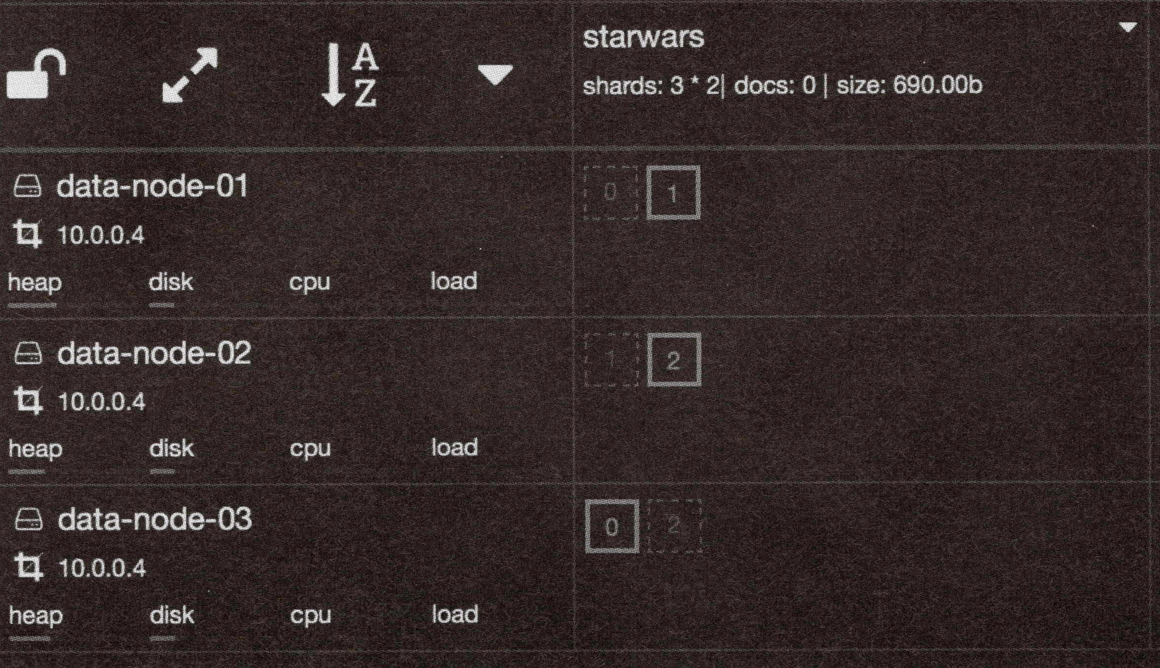 [그림 3]을 보았을 때 인덱스는 starwars이며 노드는 3개다. 우측의 숫자 박스가 샤드다. 프라이머리 샤드의 복제본이 존재하다면 물리적인 노드 하나가 죽더라도 나머지 노드 2개가 전체 데이터를 복구할 수 있다.