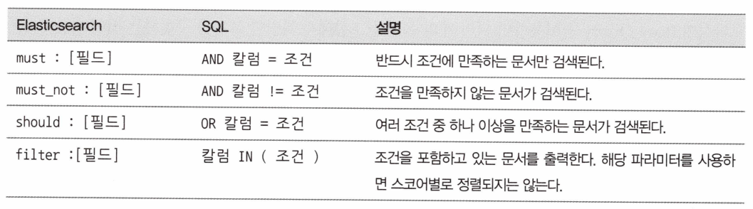 엘라스틱서치에서는 하나의 쿼리나 여러 개의 쿼리를 조합해서 더 높은 스코어를 가진 쿼리 조건으로 검색을 수행할 수 있다. 이러한 유형의 쿼리를 Compound Qeury하 하는데, 이를 구현하기 위해서는 Bool Query를 사용한다. Bool Query는 주어진 쿼리와 논리적으로 일치하는 문서를 복합적으로 검색한다. 해당 쿼리를 사용해 AND, OR, NAND, FILTER를 표현할 수 있다.