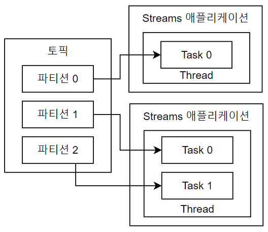 카프카 스트림즈(Kafka Streams)는 카프카에서 스트리밍 데이터를 실시간으로 처리하고 분석하기 위한 자바 라이브러리다. 기존의 데이터 처리 시스템과는 달리, 카프카 스트림즈는 데이터가 들어오는 즉시 이를 처리하고 결과를 다시 카프카 토픽에 기록할 수 있다. 카프카 스트림즈는 MSA 아키텍처에 적합하며, 높은 처리량과 확장성을 제공한다. 스트림즈 애플리케이션은 스레드를 1개 이상 생성할 수 있으며, 스레드는 1개 이상의 태스크(Task)를 갖는다.이 태스크의 수는 파티션의 수와 일치하도록 한다. 기본적으로 라이브환경에서는 안정적으로 운영할 수 있도록 2개 이상의 서버로 구성하여 스트림즈 애플리케이션을 운영한다.
