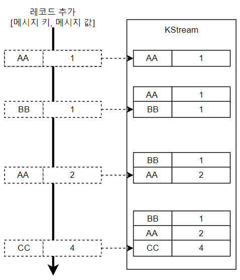 KTable은 카프카 스트림즈에서 테이블(Table) 개념을 모델링한 것이다. KTable은 특정 시점의 데이터를 나타내며, 기본적으로 레코드의 최종 상태를 유지한다. 즉, 같은 키에 대해 여러 번의 업데이트가 있을 경우, KTable에는 마지막으로 업데이트된 값만 남는다. KTable은 주로 집계 작업에 사용되며, 상태를 유지해야 하는 상황에서 유용하다. 예를 들어, 사용자별로 총 구매 금액을 계산하는 경우, KTable을 사용할 수 있다.