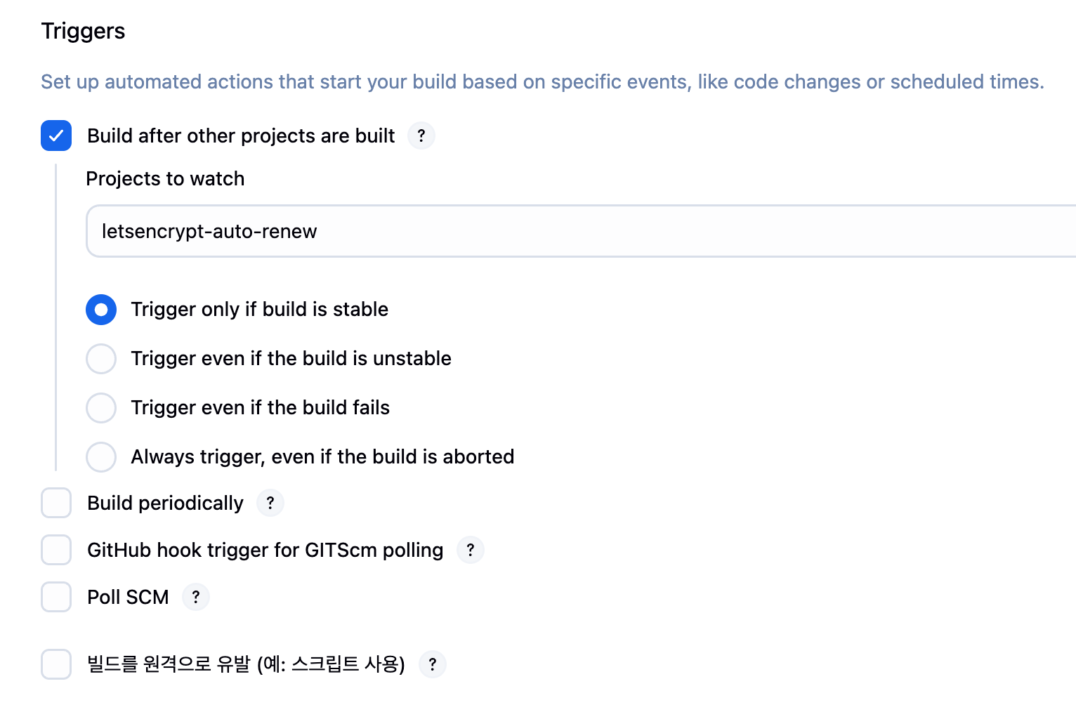 앱 배포는 자동이 아닌 수동으로 실행하게 해두었는데, 인증서가 갱신될 때마다 수동으로 실행시킨다면 완전한 자동화가 아니므로 트리거를 설정한다.