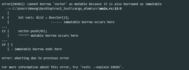 이 메시지는 rust가 "야 너 이거 빌려줘놓고 왜 사용하려고 해? 안돼. 쓰지마."라고 이야기 해주는 것.