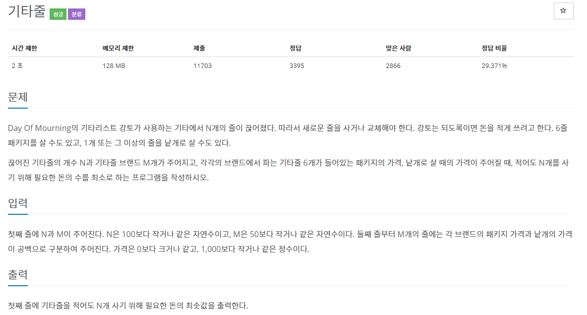 문제 기출 : [https://www.acmicpc.net/problem/1049]