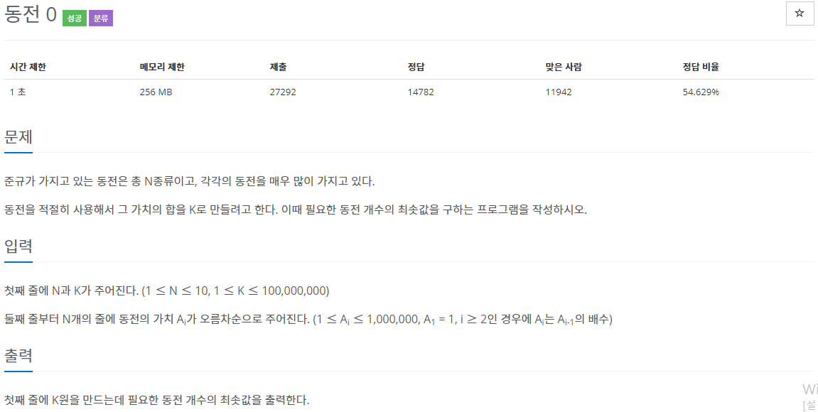 문제 기출 : [https://www.acmicpc.net/problem/11047]