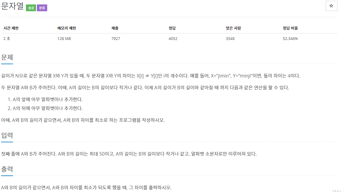 문제 기출 : [https://www.acmicpc.net/problem/1120]