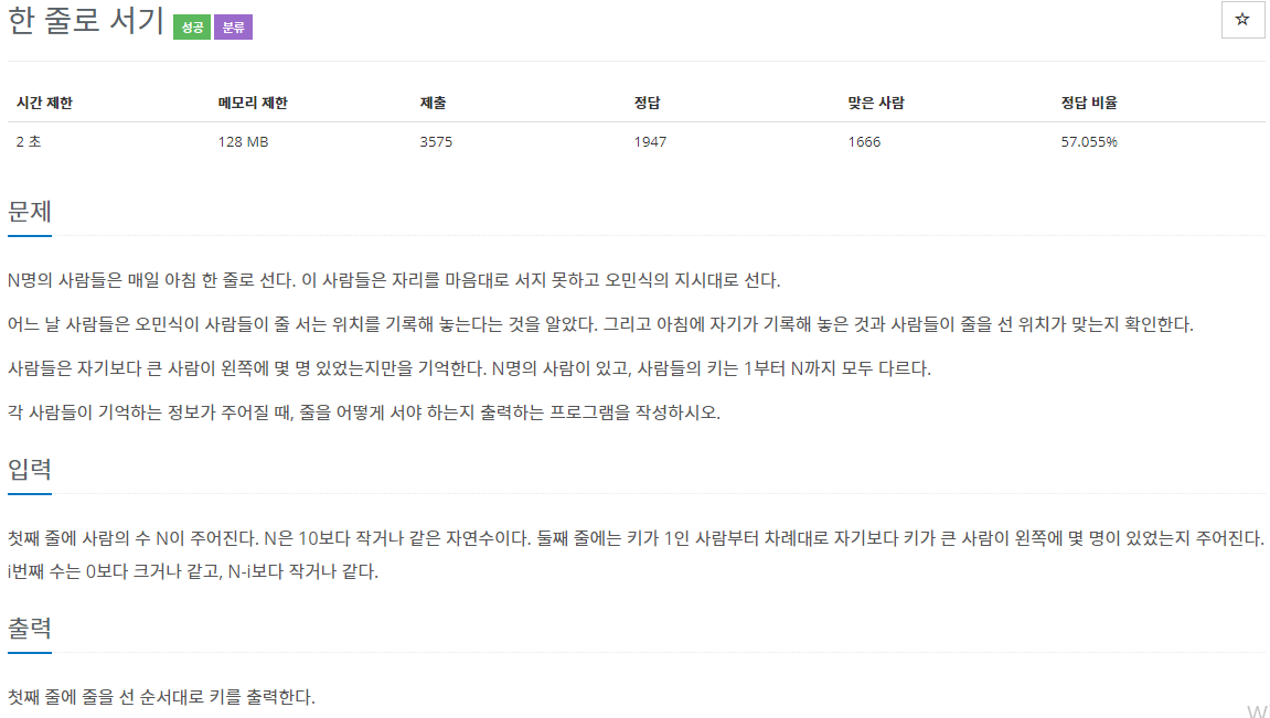 문제 기출 : [https://www.acmicpc.net/problem/1138]