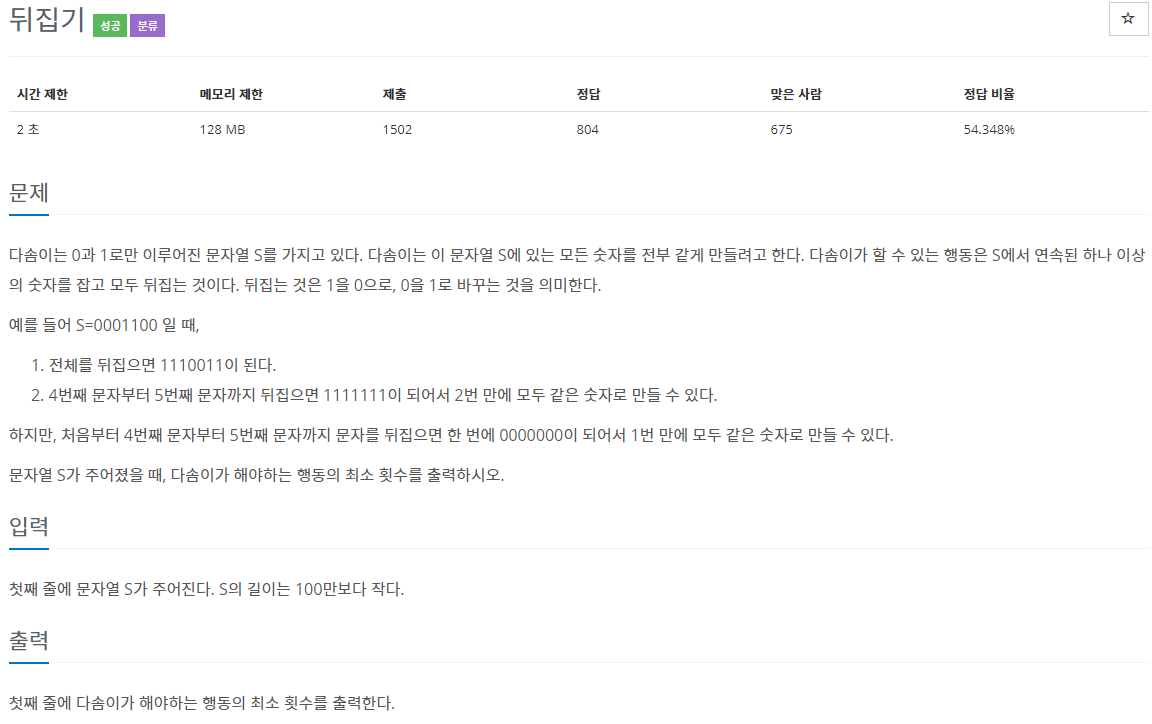 문제 기출 : [https://www.acmicpc.net/problem/1439]