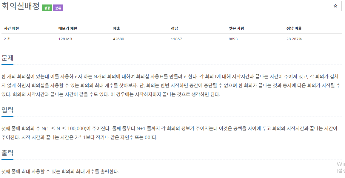 문제 기출 : [https://www.acmicpc.net/problem/1931]