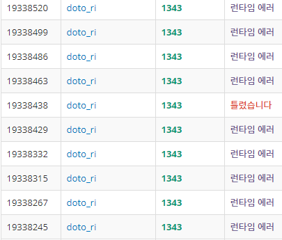 심지어 엄청난 런타임 에러때문에 식은땀을 흘렸다... 그러나 아직도 왜 런타임 에러가 뿜뿜했는지 정말 모르겠다.....ㅠㅠ ![]() |