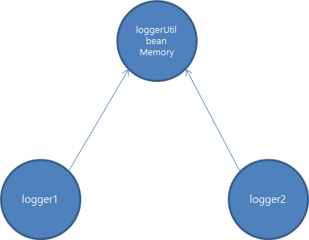 xml에 만들어 놓은 loggerUtil bean은 컴퓨터 메모리 어딘가에 있을 것이다. logger1과 logger2는 그 메모리를 바라보고 있는 것이다. (C언어에서의 포인터가 떠오른다.) 다시말해서 logger1 혹은 logger2 같은 메모리 상의 loggerUtil을 보고 있으므로 수정이 된다고 하면 함께 수정이 되는 것이다.