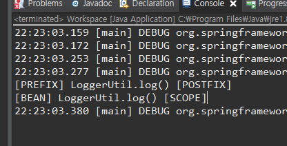 logger1과 logger2 따로 만들어서 logger2는 setter를 이용해 PREFIX와 POSTFIX를 변경했다. 그 이후에 logger1을 이용해 log()를 호출하였을 뿐 특이사항은없다.