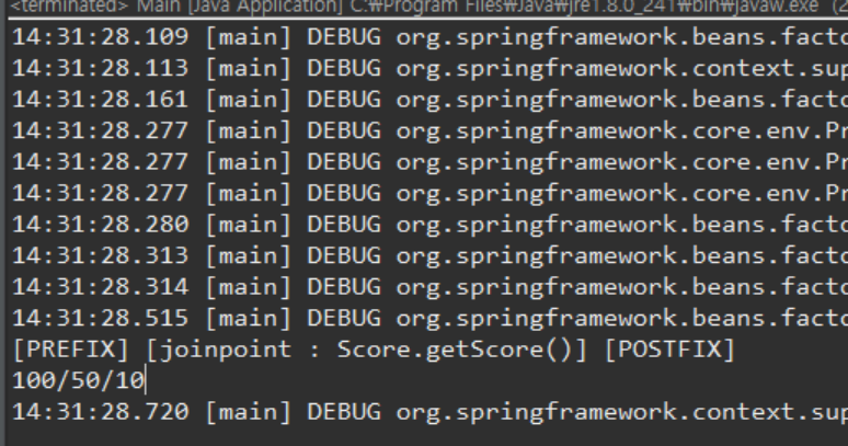 결과 화면을 보면 그림[AOP proxy 사용]이 어떠한 flow인지 바로 이해할 수 있다. AOP는 복잡하면서도 쉬우니 다시 한 번 공부하고 지나가자.