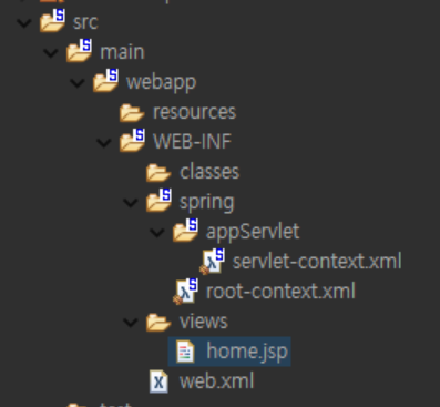 MVC 기반의 spring project를 생성하면 기본적으로 다음과 같은 디렉토리 구조를 볼 수 있다.