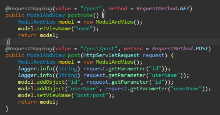 GET과 커맨드 객체까지 모두 동일하다. 다만, 테스트할 때 GET처럼 query로 데이터를 전달할 수 없기때문에 html의 form 태그를 사용하여 테스트해야한다.
