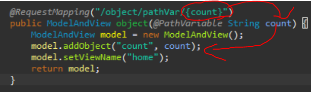 @RequestMapping의 인자로 중괄호를 사용하고 @PathVariable 어노테이션으로 인자를 받으면 해당 값을 나타낼 수 있다. 만약 http://localhost:8080/dotori/object/pathVar/18 과 같이 요청하면 웹에서 "18" 값을 볼 수 있을 것이다. 게시판이나 리스트 만들 때 사용될 것 같기도 하다.