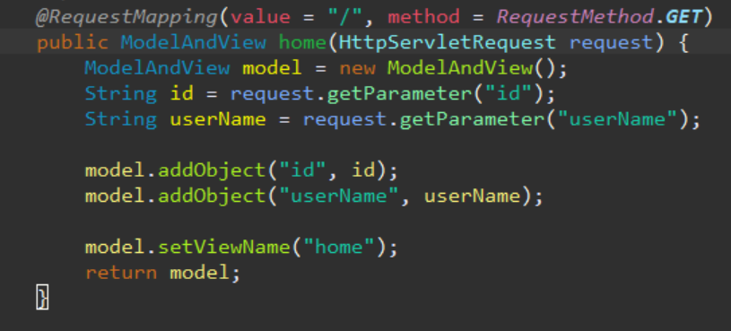 동일한 동작을 하지만 어노테이션으로 각각 파라미터를 가져온 방법이다. 그다지 좋은 방법 같지는 않다. 필요한 파라미터만큼 인자가 늘어나기 때문이고 이는 곧, 인자가 수십 개가 될수도 있다는 이야기다. 이 것을 해결하기 위한 방법으로 다음과 같은 방식도 지원한다.