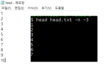 - head : 문서 내용의 앞 부분을 출력 (default 10 line)