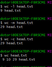 - wc : Word Count의 약자로, line수, char 수, byte 수를 알 수 있다.