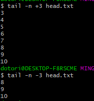 - 가장 많이 사용하는 옵션은 -c 옵션으로, 밑에서 일정 line을 제외하고 출력하는 것.