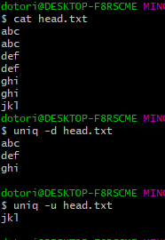 Note: 'uniq' does not detect repeated lines unless they are adjacent.