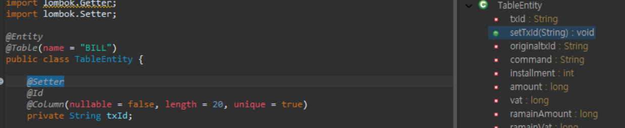 그러나 getter와 setter를 남발하는 것은 좋은 코드가 될 수 없을 것이다. 우리는 꼭 필요한 녀석만 생성해서 깔끔하고 보기 좋은 코드를 유지해야할 의무가 있다. 그래서 제공해주는 기능이 @Getter와 @Setter 어노테이션이다.