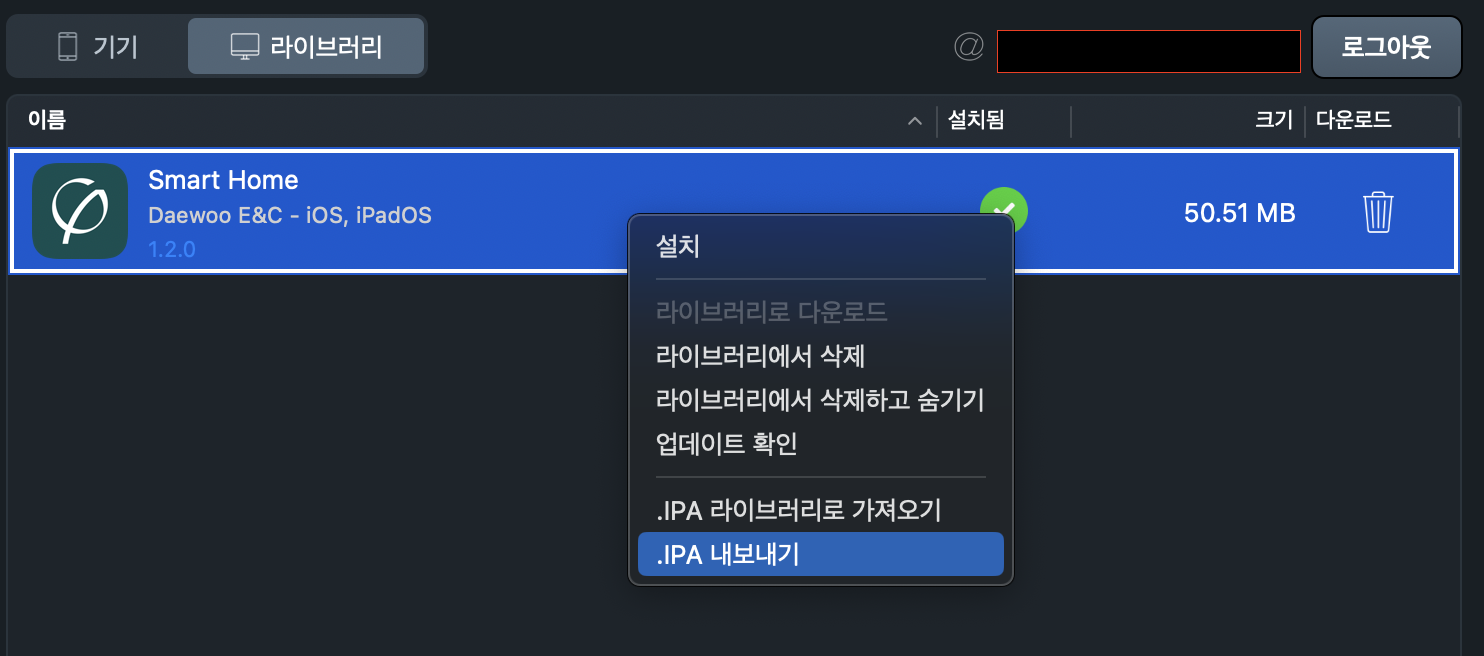 [그림 3]과 같이 백업하고난 뒤에 푸르지오 스마트홈 앱을 IPA 파일로 export하면 디컴파일할 수 있는 파일을 얻을 수 있다. IPA파일은 class-dump 혹은 hopper를 사용하여 디컴파일할 수 있다. 이제 해보.....잠깐.