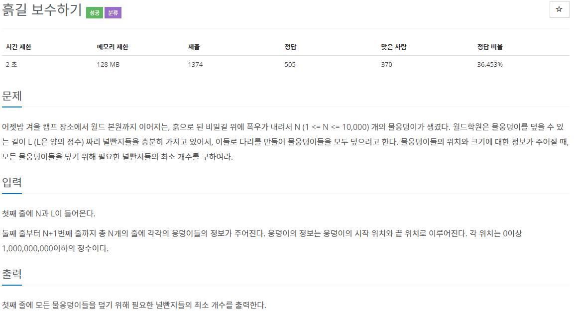 문제 기출 : [https://www.acmicpc.net/problem/1911]